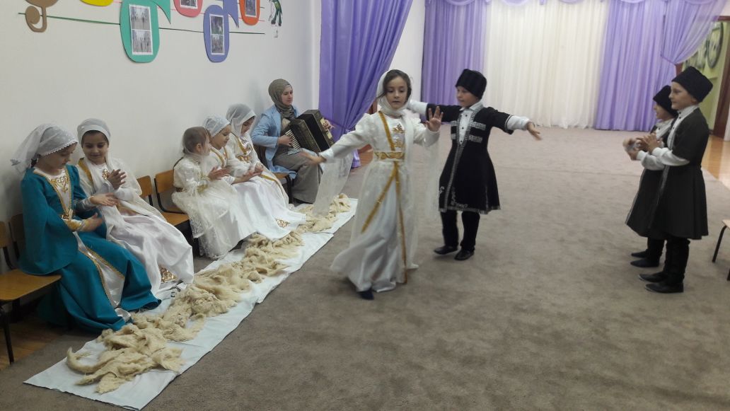 с чеченскими писателями, знакомство с национальной одеждой. С подготовительной группой была проведена инсценировка одного из обычаев чеченского народа «Белхи».